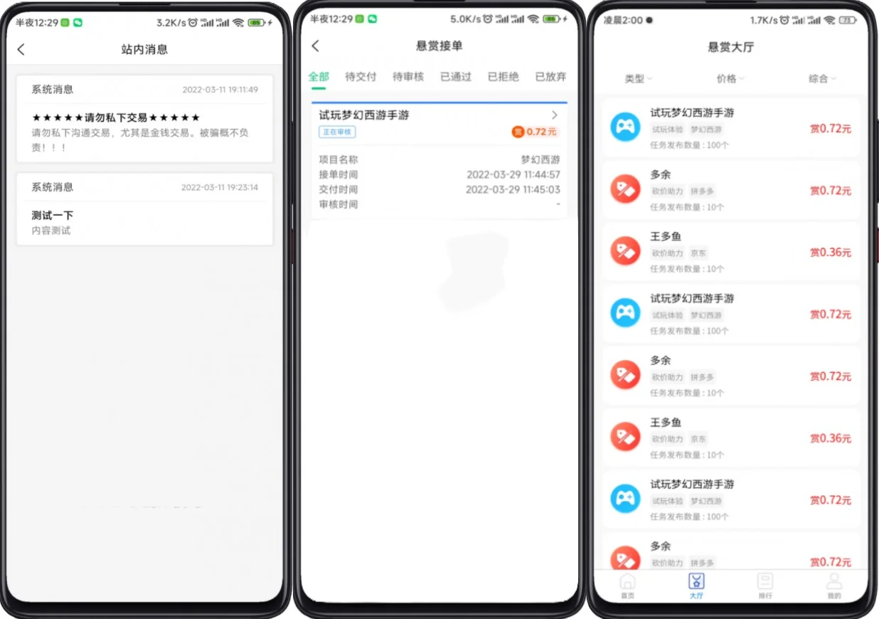 全新uniapp开发的任务悬赏系统,完整项目源码,可直接上线 附带VUE源码,搭建此源码需要一定技术,自行研究,压缩包附带文档课程