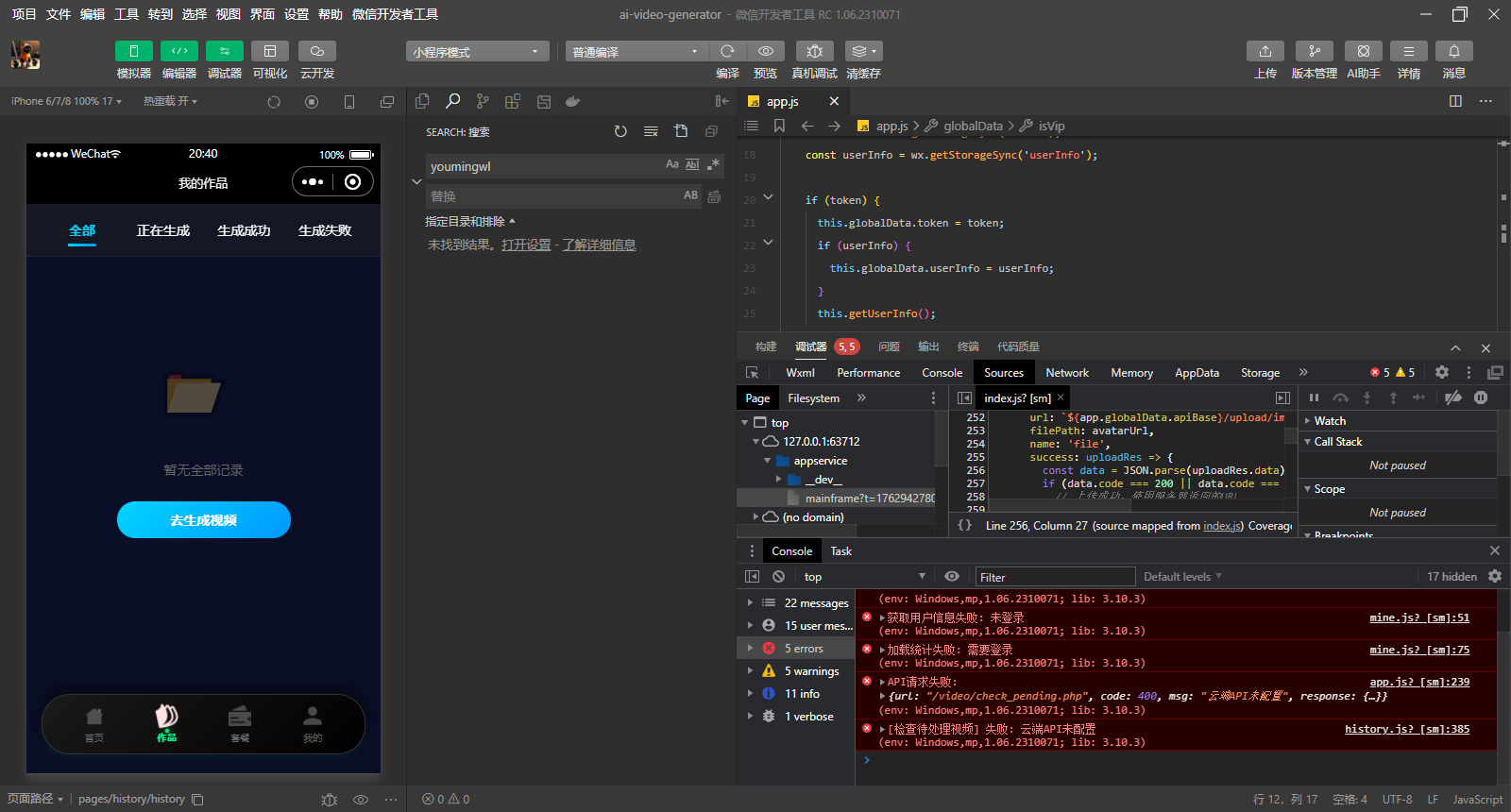 简单搭建了下,可以正常搭建出来,就是他使用的ai的API接口是固定的,需要付费才行 Sora2小程序源码带前端和后端sora 一张图片生成视频。