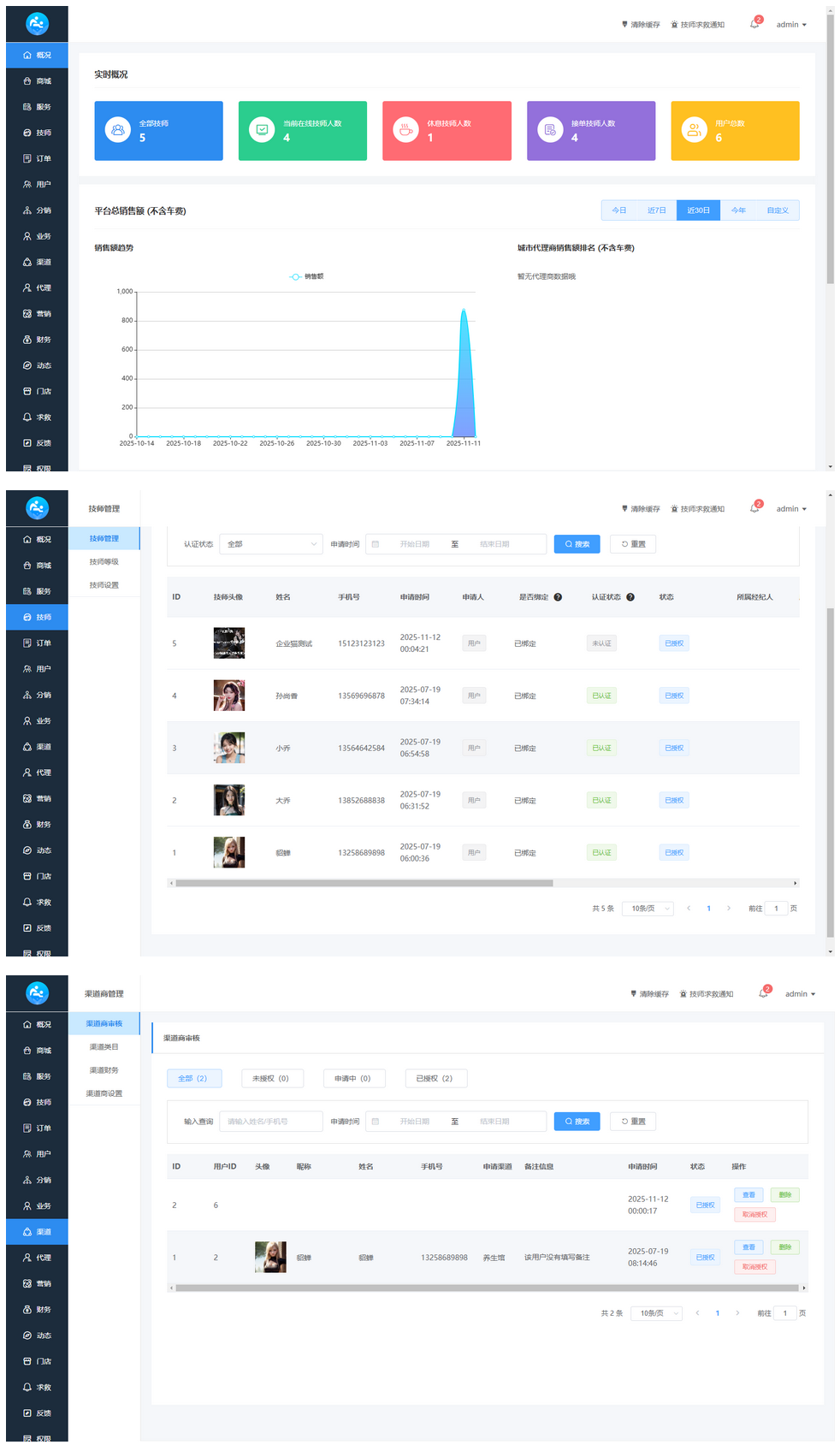 全开源上门预约系统源码 uniapp + TP6 · 多端支持 · 全新UI · 地图接口升级 全功能亲测可用|含部署教程+运营资料|支持二次开发 适用场景:推拿/足疗/美容/美发/家政/保洁/月嫂/维修/私教等“预约到家”服务 多端覆盖 前端:uniapp(公众号 H5 + 小程序 + APP,需自行打包) 后端:ThinkPHP 6(PHP 7.2 + MySQL 5.6 + Nginx + Redis) 不兼容 MySQL 5.7;需备案域名 + 微信认证服务号/小程序 + 微信支付 核心功能亮点 用户端:地图找人、预约下单、会员储值、优惠券 技师端:实时定位、接单提醒、收入提现、信用分、服务录音 代理/渠道:转单退款、邀请技师、多级后台 平台管理:强制派单、私单预警、分账系统、分销返佣、区域代理 营销工具:储值套餐、裂变分销、经纪人制度 消息通知:短信 + 公众号 + 隐私号 + 通话录音